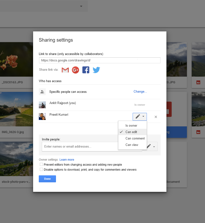 | Advanced sharing settings dialog showing current owner. Click for full-size image. |